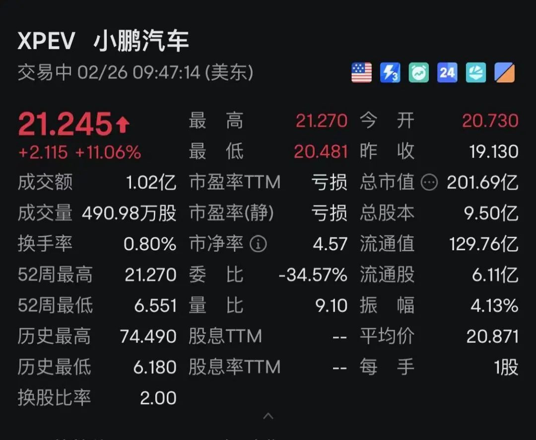新闻面上,CEO何小鹏发布,新款小鹏G6将于2月28日正式表态。别的,何小鹏表现,公司打算在2025年推出准L3跟L3主动驾驶,相干技巧架构能复用至人形呆板人的脚、手构造,而且公司有信念成为中国最早量产L3呆板人的企业之一。幻想方面,2月25日,幻想颁布旗下首款纯电SUV i8的表面外型信息。别的,多只中概股涨幅均超10%。