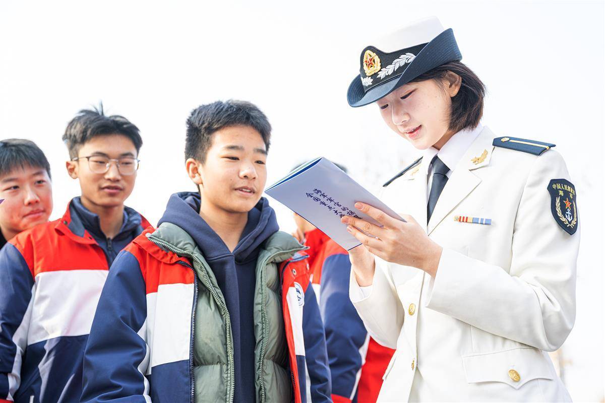 海工军乐团“小妹妹”美丽又飒,学生排队签名送祝福
