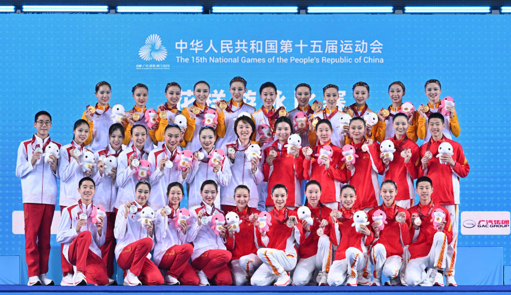 11月14日,第十五届全运会花样游泳团体比赛在江门举行。北京体育大学代表队获得冠军。 ↑ 获得冠军(TOP)的北京体育大学代表队、获得亚军的北京代表队(从左至左)、获得季军的四川代表队队员在颁奖典礼上合影。新华社记者李欣摄↑北京体育大学夺冠队员在颁奖典礼上。新华社记者李欣摄↑亚军北京队队员在颁奖典礼上。新华社记者 李欣 摄 ↑ 北京体育大学代表队选手在集体技能选拔赛中展开较量。最终,我队获得了本次赛事的集体冠军。新华社记者陈忠浩摄↑北京体育大学代表队选手参加集体选拔技能选拔赛。最终,球队n 该赛事的集体冠军。新华社记者陈忠浩摄↑北京体育大学代表队选手参加集体选拔技能选拔赛。最终,我队获得了本次赛事的集体冠军。新华社记者陈忠浩摄↑北京体育大学代表队选手参加集体选拔技能选拔赛。最终,我队获得了本次赛事的集体冠军。新华社记者陈忠豪摄↑集体自选比赛中,北京体育大学代表队队员准备下水。最终,我队荣获集体项目冠军。新华社记者陈忠浩摄↑北京体育大学代表队选手参加集体选拔技能选拔赛。最终,我队获得了本次赛事的集体冠军。新华社记者 陈忠浩 摄↑北京体育大学球员大学代表队参加集体选拔技能选拔赛。最终,我队获得了本次赛事的集体冠军。新华社记者李欣摄↑北京队集体选拔赛选手。最终,代表队获得集体赛亚军。新华社记者陈忠浩摄↑北京队球员在自选比赛中。最终,代表队获得集体赛亚军。新华社记者李欣摄↑冠军北京体育大学代表队(中)队员登上领奖台。新华社记者 李欣 摄 ↑集体技能自评比赛四川队选手。最终,我队获得团体赛第三名。新华社记者陈忠豪摄↑四川队球员在自选比赛中。最终,我队获得团体赛第三名。新华社记者 陈忠 摄ghao ↑ 四川队球员在自选比赛中。最终,我队获得团体赛第三名。新华社记者 李欣 摄 ↑ 香港队选手参加集体技能自评比赛。最终,该队在集体项目中获得第十名。新华社记者陈忠豪摄↑自选比赛中的天津队队员。最终,我队在集体赛中获得第九名。新华社记者 陈忠豪 摄 ↑广东队队员在自选赛中。最终,我队获得团体赛第六名。新华社记者 李欣 摄 ↑ 香港队选手参加集体技能自评比赛。最终,该队在集体项目中获得第十名。新华社记者 李欣 摄